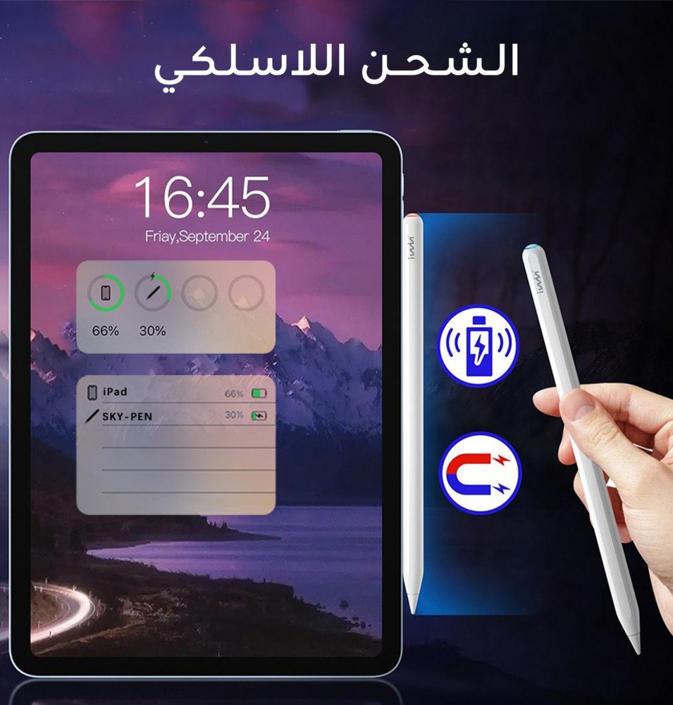 يمكن شحن قلم Iwin المطور لاسلكيًا عن طريق توصيله بالجانب المغناطيسي لجهاز الايباد .